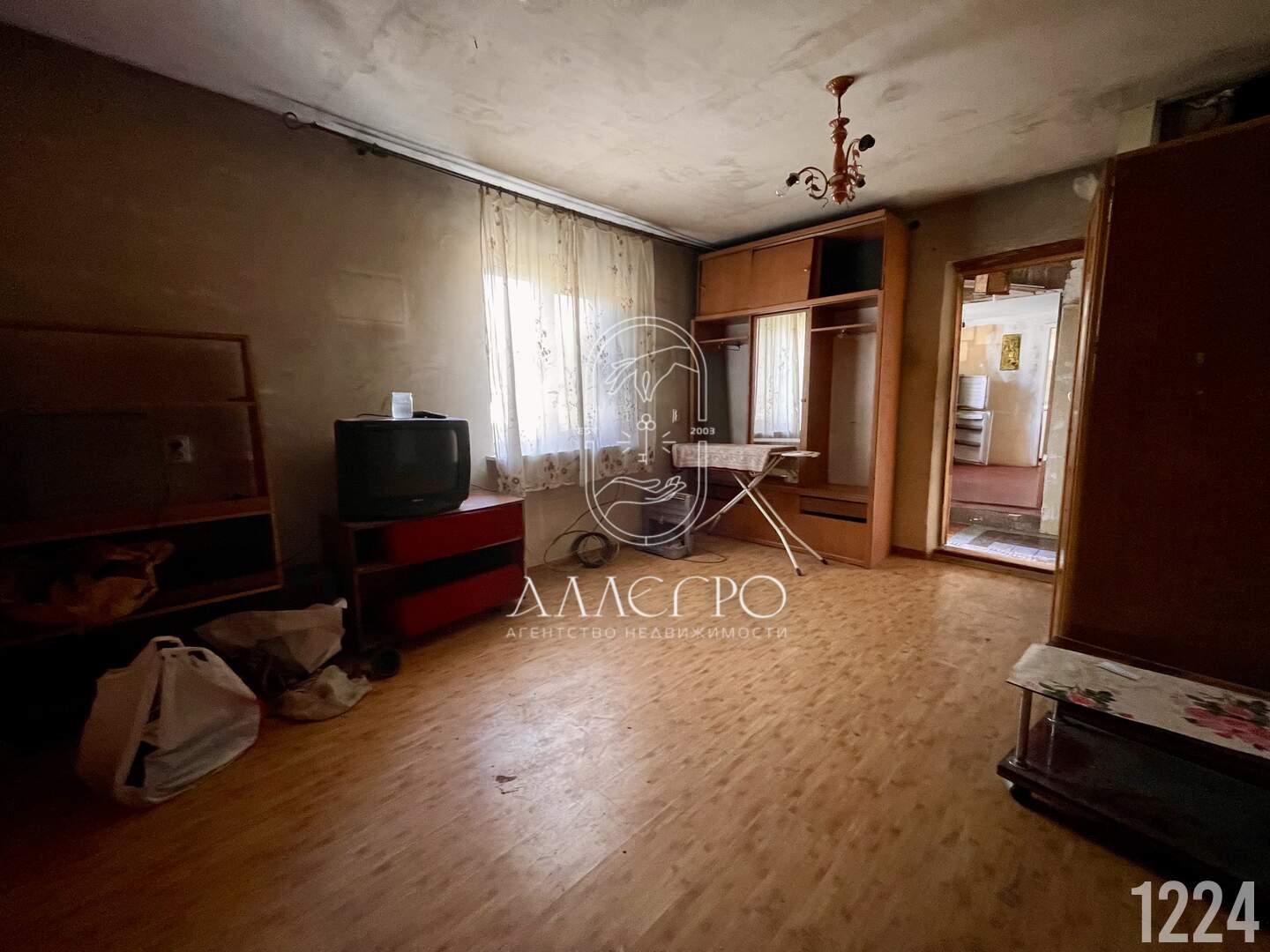 Планировка- большая комната (14.5 кв.м) , кухня ( 11.7 кв.м) и совмещенный санузел.