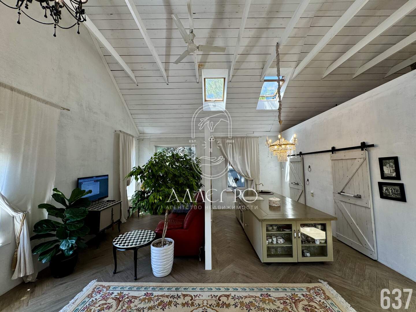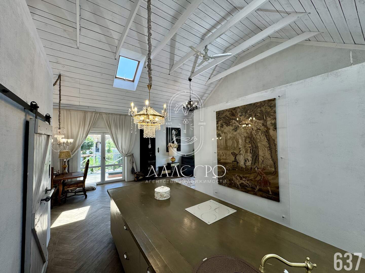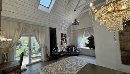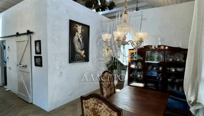 Дизайн выполнен в стиле Барнхаус, европейский стиль в интерьере. Меблировка дома выполнена на заказ, эксклюзивные предметы интерьера, установлен действующий камин.