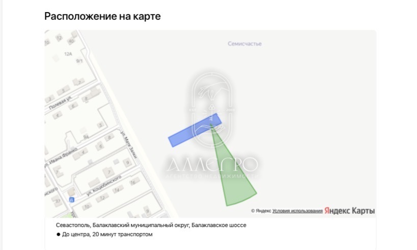 Расстояние на автомобиле до важнейших точек Севастополя: Набережная Балаклавы — 10 минут. Центр Севастополя и Новый Херсонес — 20 минут. Ж/Д и автовокзалы — 15 минут. ТЦ «Sea Mall» — 5 минут. ТЦ «Муссон» — 20 минут.