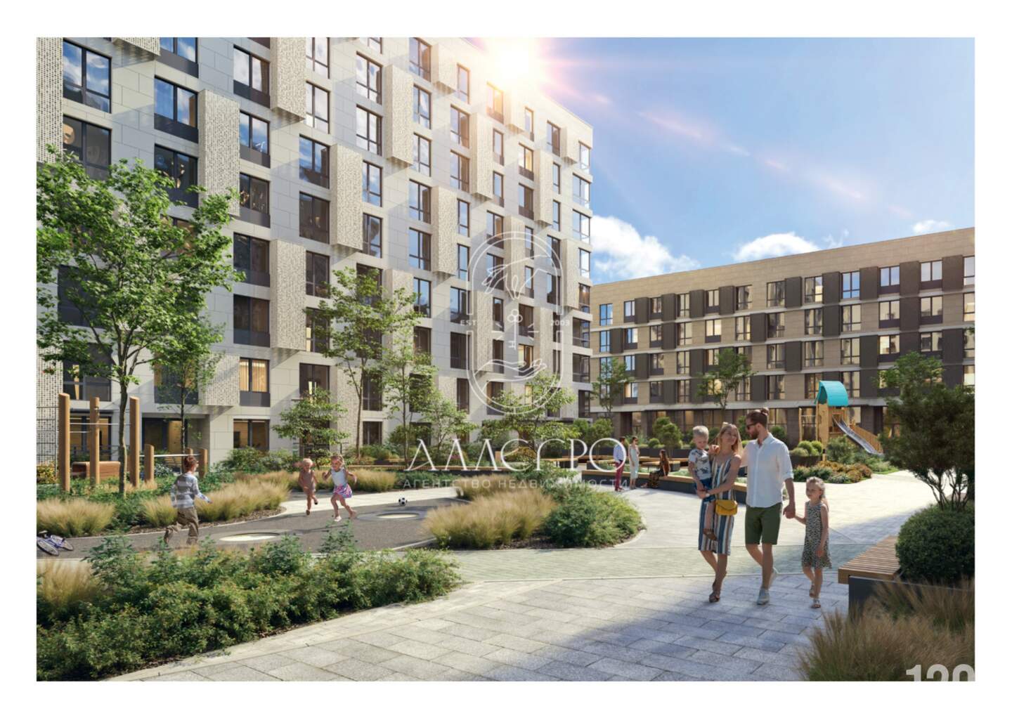 Район выглядит современно, статусно с детскими и спортивными площадками, пешеходный бульвар с зонами отдыха и велодорожки.